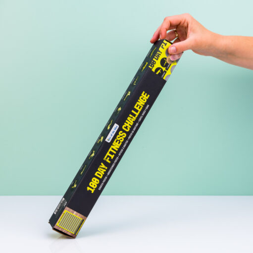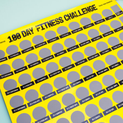Daag jezelf of een ander uit om fitter te worden met de 100 Day Fitness Challenge krasposter van Out of the Blue. Op deze krasposter staan allerlei fitnessoefeningen. Het is de bedoeling dat je ze steeds vaker herhaalt. Heb je een oefening gedaan, dan kras je het zilverfolie weg. Met deze poster doe je de oefeningen honderd dagen achter elkaar. Zo weet je zeker dat je na drie maanden een heel stuk fitter bent.