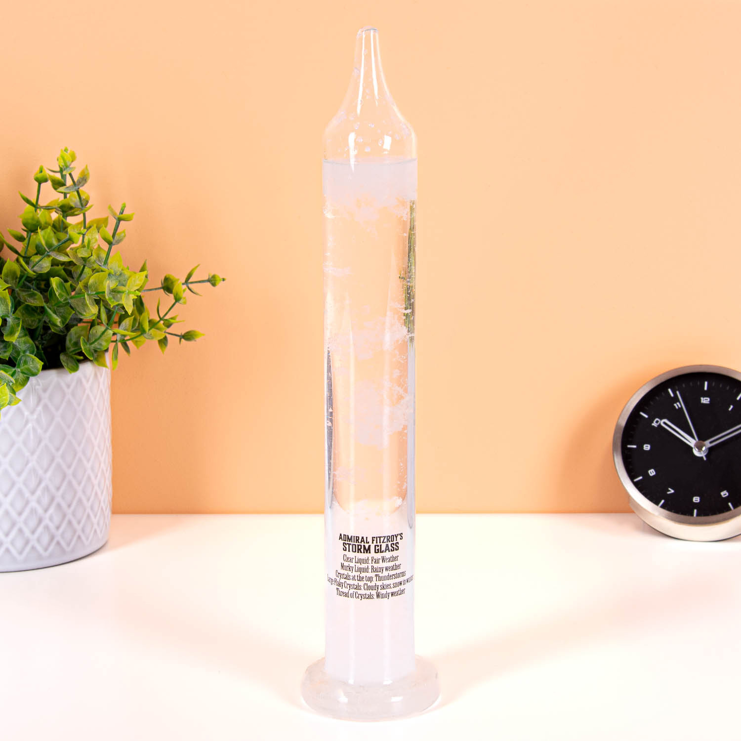 Het Admiral stormglas helpt je om het weer te voorspellen en is vernoemd naar Admiraal Robert Fitzroy. Aan de kristallen kun je aflezen wat voor weer het wordt.