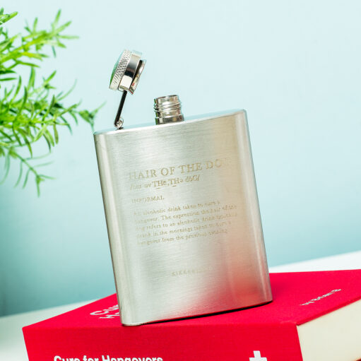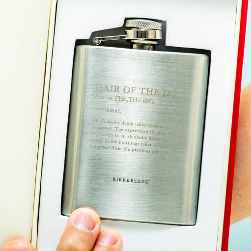 Stel: je studeert sinds kort maar moet nog even in het ritme komen van feesten, college en weer feesten. Of je gaat op vakantie met vrienden die elke nacht op stap willen. Het Anti-kater boek met geheime heupflacon van Kikkerland is perfect voor jou! Dit boek heeft handige anti-kater tips… Tenminste, zo lijkt het. In werkelijkheid zit er een heupflacon in verstopt, die je vult met je favoriete drank. Een paar slokken en je kater verdwijnt als sneeuw voor de zon. Op de heupflacon staat de tekst Hair of the Dog: zo noemen Engelsen de alcohol die je drinkt om een kater te bestrijden.