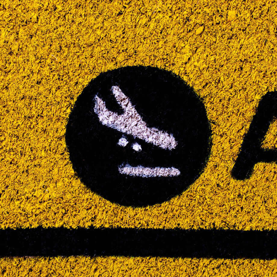 Deurmat die eruit ziet als een bord op het vliegveld