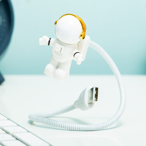 We weten heus wel dat je elke dag met tegenzin gaat studeren. Maar het moet nou eenmaal. Met het Astronaut USB-lampje van Out of the Blue heb je in elk geval leuk gezelschap. Dit zwevende astronautje is op ontdekkingsreis in jouw kamer. Hij zit met de flexibele stang ingeplugd in de USB-poort van je laptop en kan in allerlei verschillende standen zweven. Om het licht te kunnen zien schuif je het vizier van de astronaut omhoog. Ook te gebruiken als lampje in de kinderkamer. Gebruik dan een USB-stekker om het lampje in het stopcontact te doen.