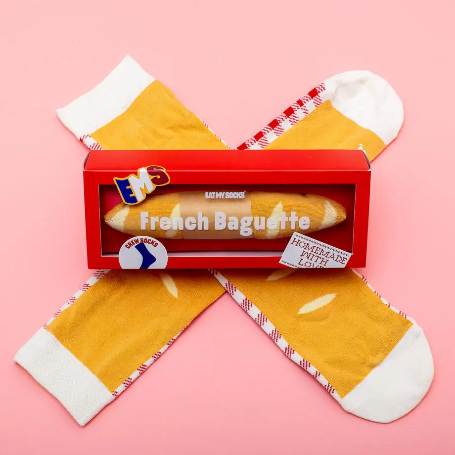 Sokken in de vorm van een baguette van Eat My Socks