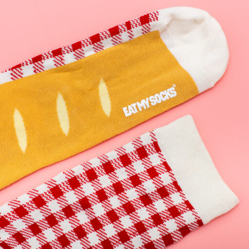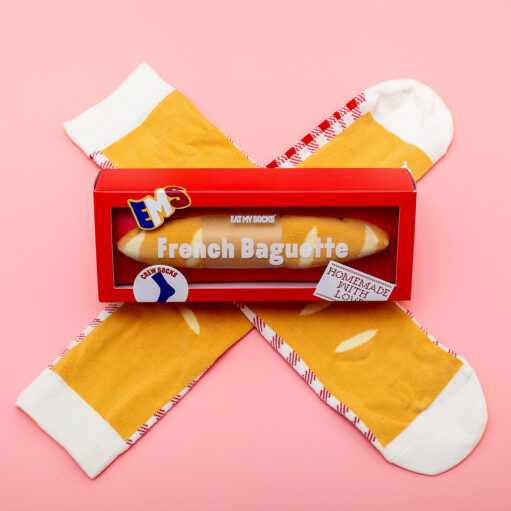 Met de Baguette sokken van Eat My Socks ligt heel Frankrijk aan je voeten. Want zeg nou zelf: is er iets franser dan een baguette? Deze originele sokken zien er in de verpakking uit als een stokbroodje, maar zijn in werkelijkheid toch echt bestemd voor aan je voeten. De bovenkant van de sokken ziet eruit als een stokbroodje: de onderkant als een servet.
