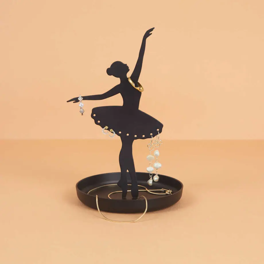 Pirouette! De Ballet sieradenhouder van Balvi is een zwarte sieradenhouder in de vorm van een ballerina silhouet. Hang je ringen, kettingen en armbanden aan de elegante ballerina die een charmante touch aan je kaptafel of badkamer brengt. Met antislip steunpunten blijft alles mooi op zijn plaats. Een sierlijk cadeau voor sieradenliefhebbers!