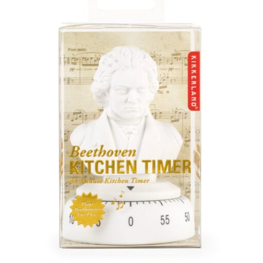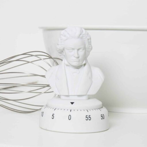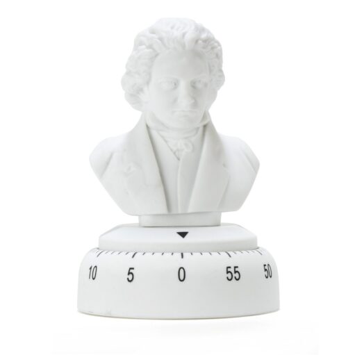 Koken met de symfonie van Beethoven, het klinkt je vast als muziek in de oren. Een onmisbaar item in de keuken is de Beethoven kookwekker van Kikkerland, dachten wij zo. Deze witte kookwekker ziet eruit als een borstbeeld van Beethoven en kun je instellen tot 59 minuten. Wanneer het gerecht klaar is kun jij het serveren onder het genot van Beethovens Für Elise. De mechanische kookwekker is het perfecte cadeau voor iedereen die fan is van Beethoven of klassieke muziek. Geef Beethoven een mooi plekje in de keuken en geniet van een muzikale kooksessie.