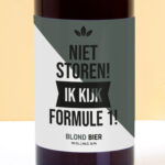 Bierfles met tekst: Niet storen, ik kijk Formule 1