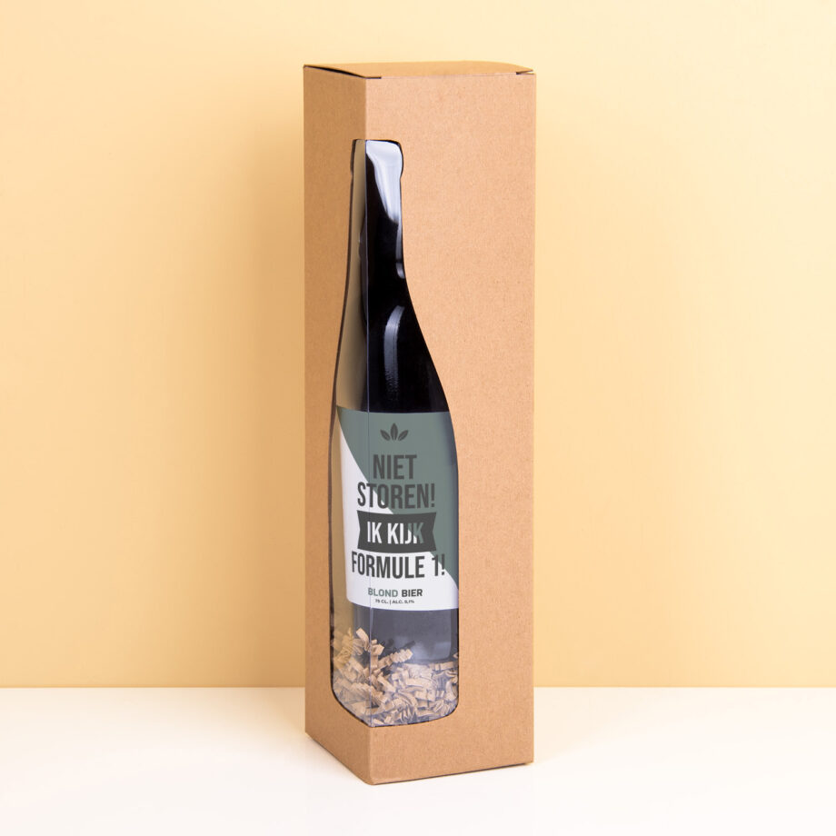 Als je een uniek cadeautje zoekt voor een Formule 1 fan, dan heb je het met de Bierfles Niet storen Formule 1 gevonden. Deze bierfles, gevuld met overheerlijk blond bier uit België, is zowel lekker als praktisch. Op het etiket staat namelijk de tekst: Niet storen! Ik kijk Formule 1! En met een inhoud van 750 milliliter kan de ontvanger vast de hele race uitzitten.
