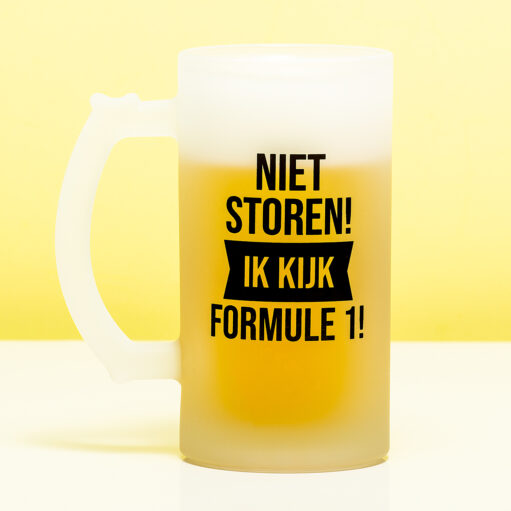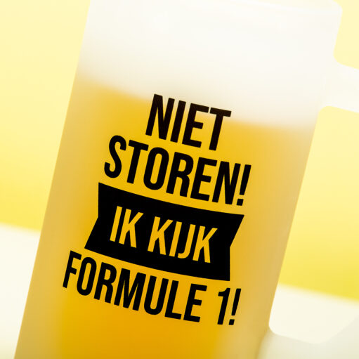 Je kijkt de hele week uit naar die twee uurtjes op zondag: de Formule 1 race. En precies op dat moment weten vrienden of je gezin je te storen. Maar niet als je de Bierpul Niet storen Formule 1 gebruikt! De tekst op de bierpul van gematteerd glas is duidelijk: Niet storen! Ik kijk Formule 1. Ook ideaal om als cadeautje aan iemand te geven.