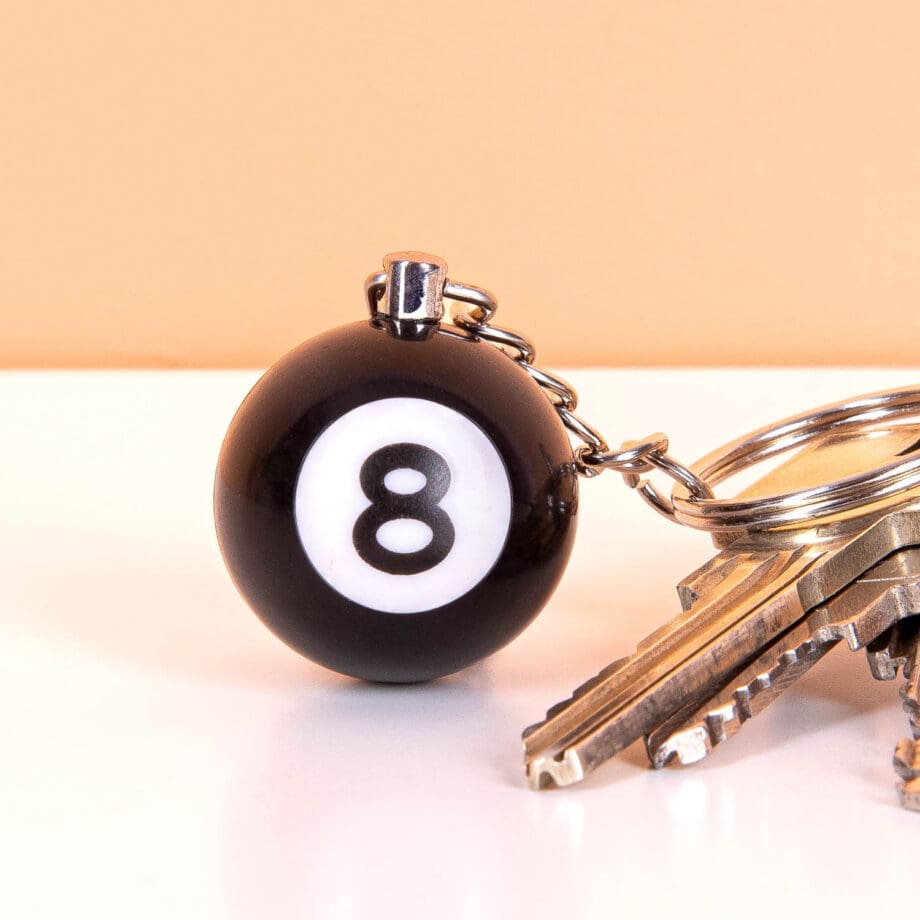 Sleutelhanger met een 8 ball biljartbal