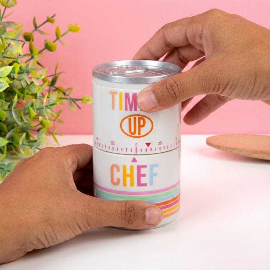 Een perfect gebakken taart en een ovenschotel die helemaal gaar is: met de Blik kookwekker van Fisura wordt koken een fluitje van een cent. Deze kookwekker heeft een vrolijke uitstraling: hij lijkt op een blikje en bevat vrolijke kleuren. Op de kookwekker staat de tekst: Timeโs Up Chef. Een origineel cadeautje voor iedereen die van koken houdt.