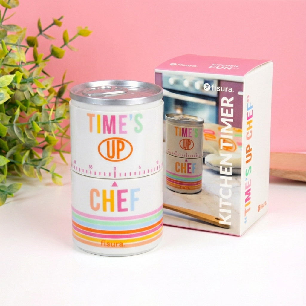 Een perfect gebakken taart en een ovenschotel die helemaal gaar is: met de Blik kookwekker van Fisura wordt koken een fluitje van een cent. Deze kookwekker heeft een vrolijke uitstraling: hij lijkt op een blikje en bevat vrolijke kleuren. Op de kookwekker staat de tekst: Time’s Up Chef. Een origineel cadeautje voor iedereen die van koken houdt.