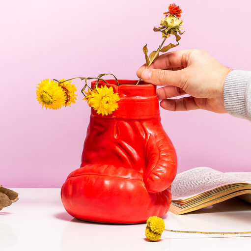 Is boksen je hobby? Laat het iedereen zien, door de Bokshandschoen vaas van Bitten in je huis te zetten. Deze stoere vaas ziet eruit als een echte bokshandschoen, maar is gemaakt van aardewerk. Leuk om cadeau te geven aan iemand die graag bokst, maar uiteraard ook heel leuk voor in je eigen vensterbank!