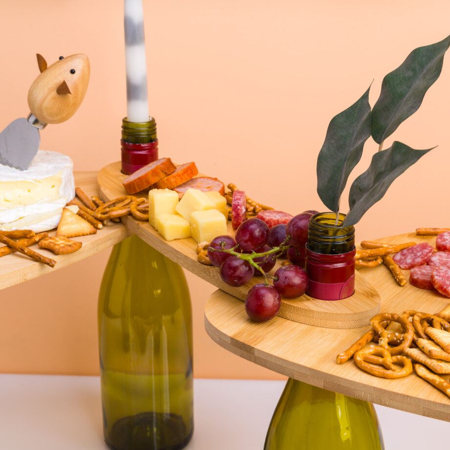 Bamboe hapjesborden voor om een wijnfles van Winkee