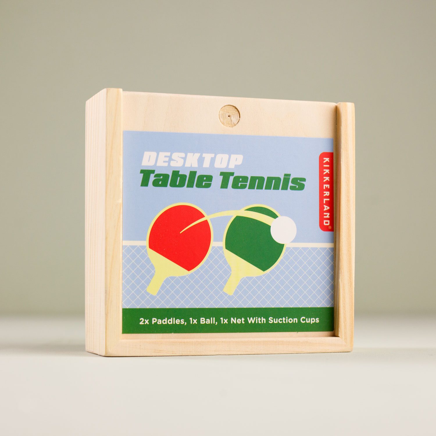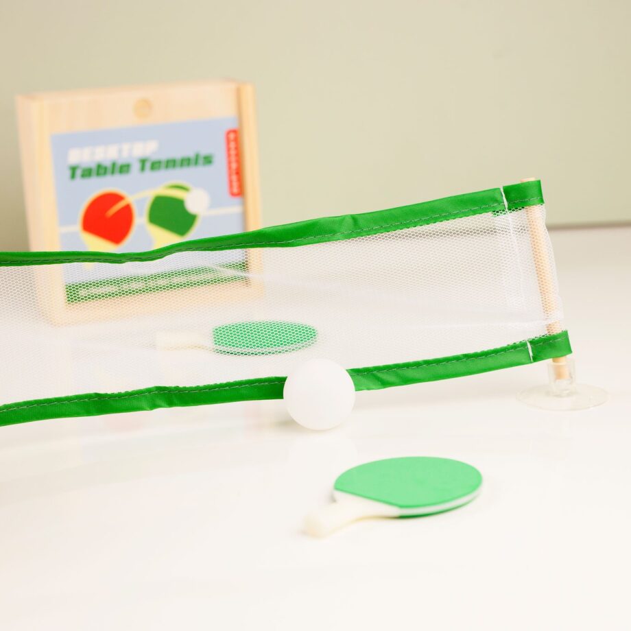 Even lekker een spelletje doen in de baas z’n tijd? Dat kan prima met de Bureau tafeltennis set van Kikkerland. Hiermee tover je een bureau of tafel in de kantine eenvoudig om tot een pingpongtafel. De pootjes van het net zijn voorzien van zuignappen en daarnaast krijg je natuurlijk ook twee batjes en een pingpongbal. Nodig je collega’s uit voor een potje tafeltennis, maar let wel op dat je werkgever niet opeens binnen komt lopen!