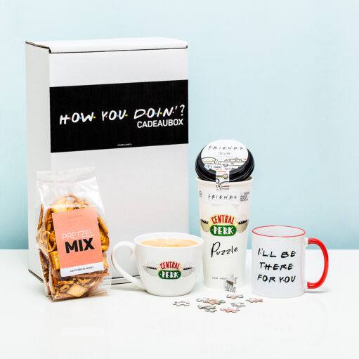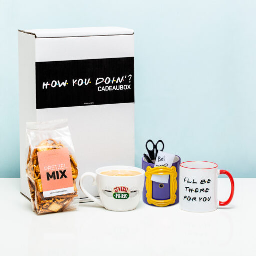 Eindeloos Friends kijken en nog steeds lachen om de grapjes: klinkt dat zoals jouw moeder, vriend of partner? Geef hem of haar dan de Cadeaubox Friends cadeau! Deze leuke giftset heeft allerlei leuke Friends producten. Zo zit er een Mok How you doin, een Friends Thermosfles I’ll Be There For You en een Friends tegeltje I’ll Be There For You. Het perfecte cadeautje voor Friends fans!