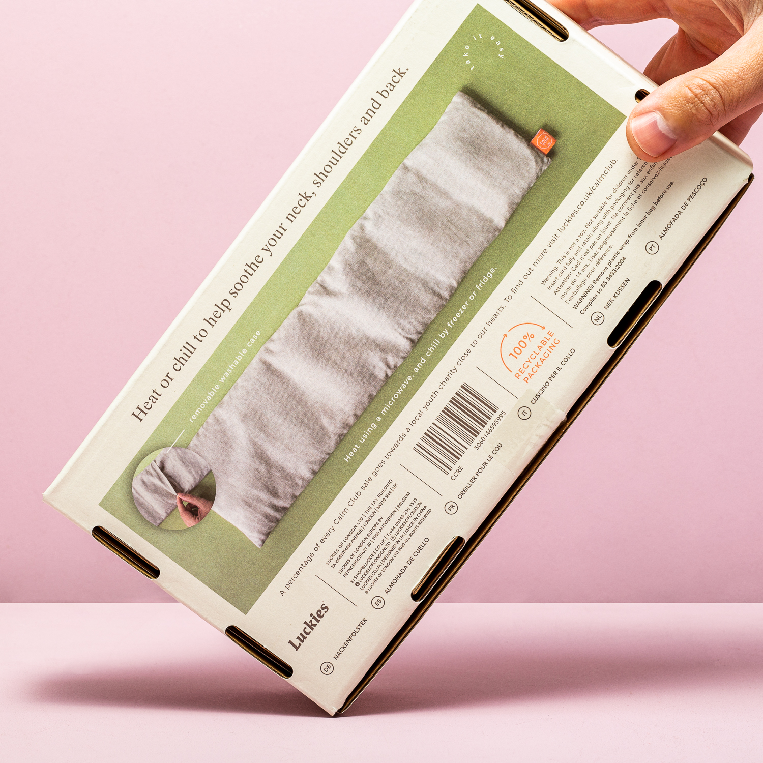 Je zere schouders of pijnlijke nek voelen snel beter aan als je het Calm Club warmtekussen van Luckies gebruikt. Dit langwerpige kussen is gevuld met tarwe, dat je zowel op kunt warmen als kunt verkoelen in de diepvries. De lavendelgeur die het kussen verspreidt zorgt ervoor dat je je nog beter kunt ontspannen.