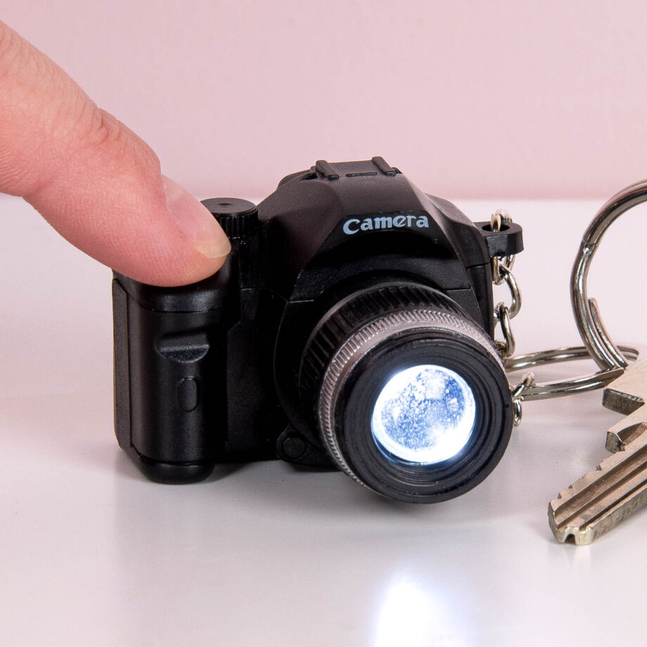 Vind je sleutels altijd terug met de Camera sleutelhanger van Winkee. Deze leuke sleutelhanger in cameravorm geeft licht en maakt geluid wanneer je op het knopje drukt. Handig om je sleutels in je tas te vinden en gewoon heel leuk om te hebben. Een origineel cadeau voor iedereen die van fotografie houdt.