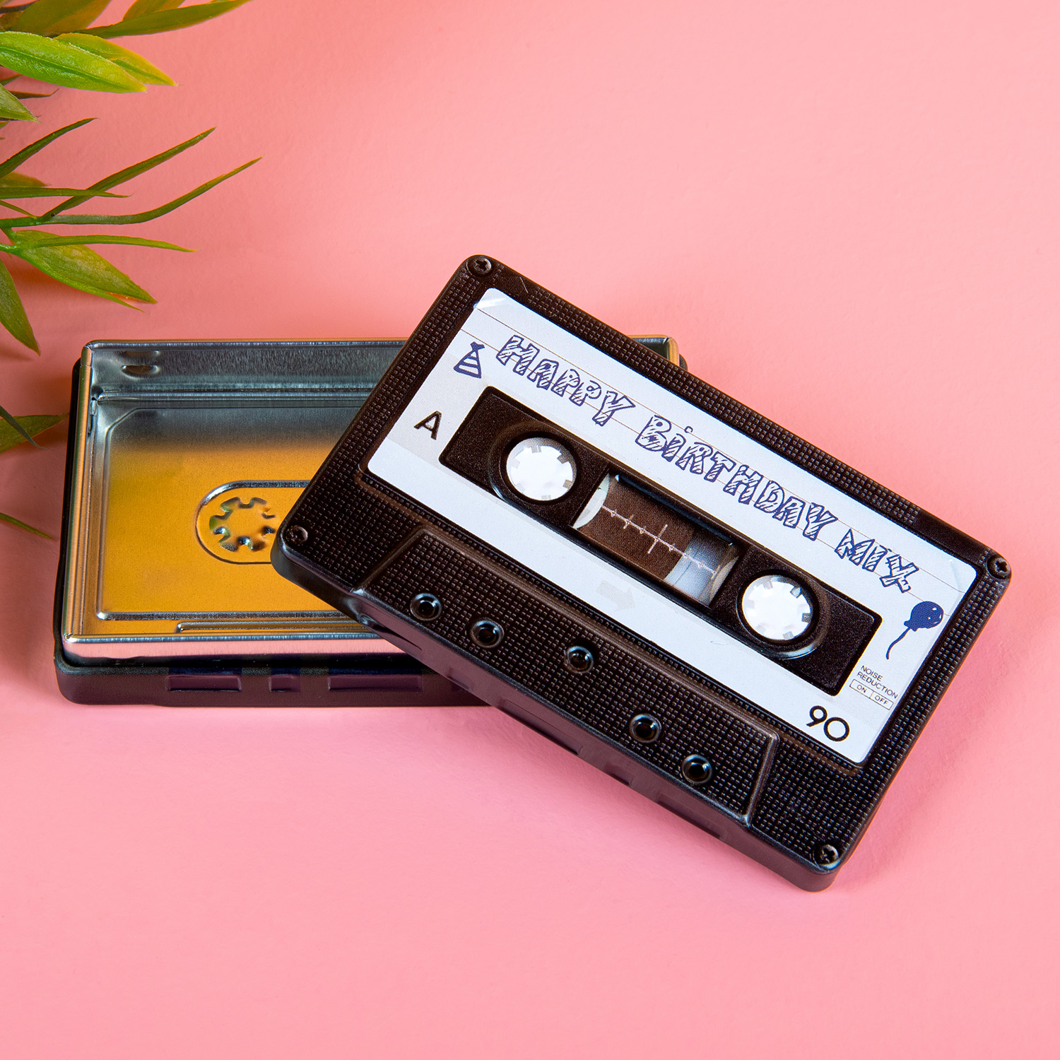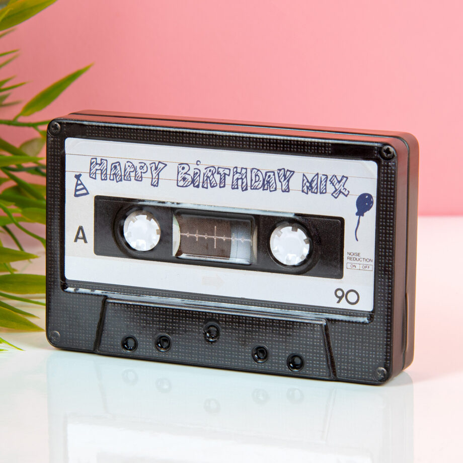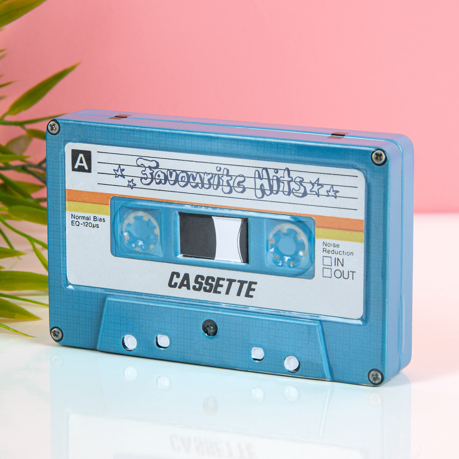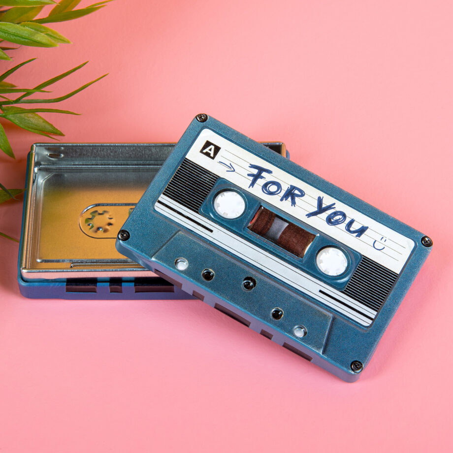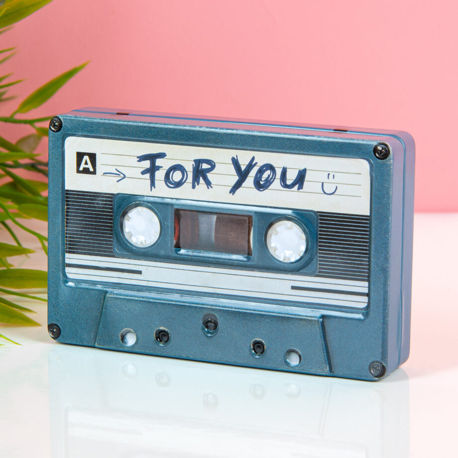 Opbergblikje in de vorm van een cassettebandje