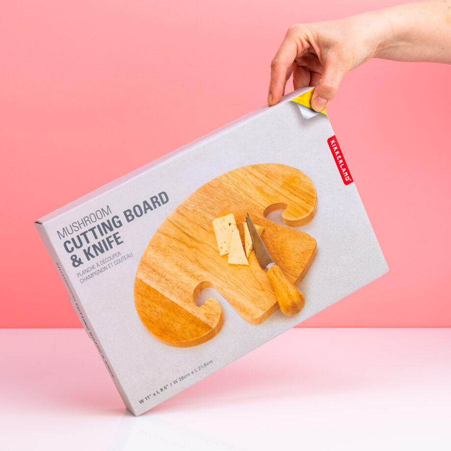 Zoek je een origineel cadeau voor een bourgondiër die dol is op lekkere hapjes? Kies voor de Champignon snijplank met kaasmes van Kikkerland! Deze leuke set bestaat uit een houten snijplank in de vorm van een champignon en een kaasmes. Perfect om heerlijke kaasjes en andere borrelhapjes op te serveren tijdens een romantisch avondje of een gezellige middag met vrienden.