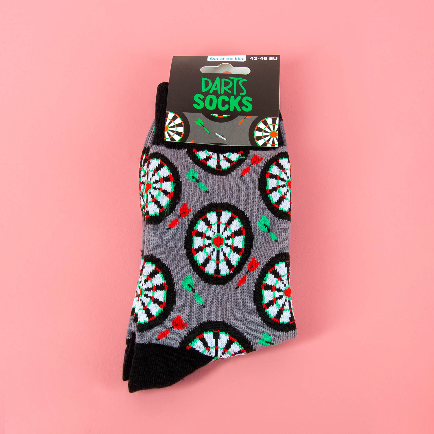 Sokken zijn een praktisch cadeau, maar dat wil nog niet zeggen dat de ontvanger er blij mee is. Maar als je een dart-fan verrast met deze unieke Dart sokken, dan is dat ongetwijfeld een schot in de roos. De sokken zijn versierd met dartboards en pijlen: helemaal in stijl.