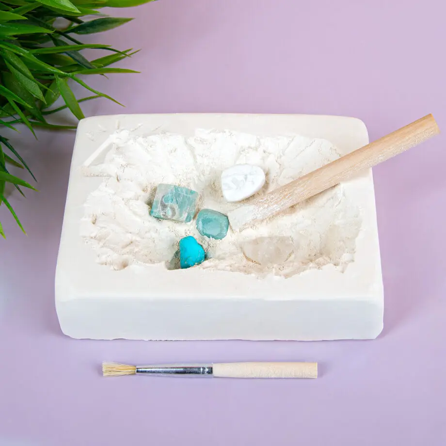Als je een origineel cadeautje zoekt voor Sinterklaas of een kinderverjaardag, kijk dan eens naar de Dig It Out edelstenen opgraafset van Out of the Blue. Deze set is geรฏnspireerd op de archeologie: kinderen gaan aan de slag met een stokje en een kwastje om de vijf edelstenen uit het gipsen blok op te graven. Een super leuk en origineel cadeau, waar ze veel plezier aan zullen beleven. In het blok kan o.a. agaat, fluoriet, rozenkwarts en amethist zitten.