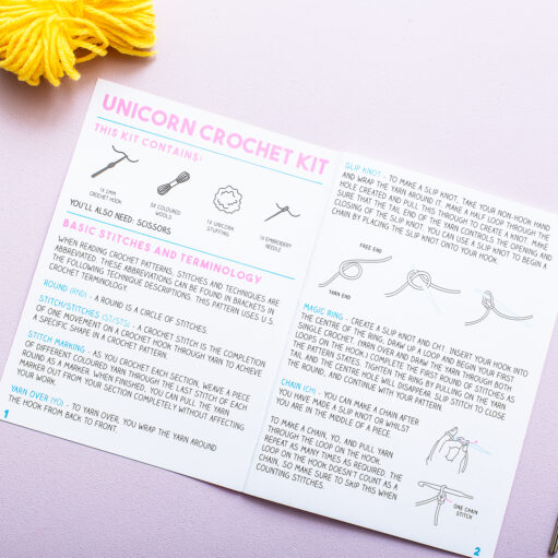 - Inhoud: wol, haaknaald, vulling, borduurnaald en instructies