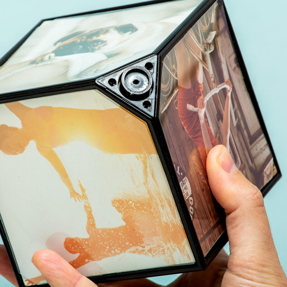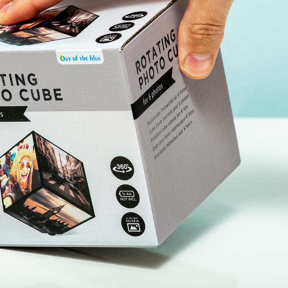 Wat geef je iemand cadeau om wie je veel geeft? Een persoonlijk cadeau! De Draaiende fotokubus van Out of the Blue is zo’n persoonlijk cadeau. Je kunt deze fotokubus namelijk alvast vullen met de mooiste foto’s van jullie samen voor je hem cadeau geeft. De fotolijst draait rustig rondjes en laat zo elke foto goed zien.
