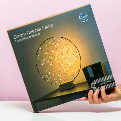 Een dromenvanger zou volgens de legende je slechte dromen vangen en alleen je goede dromen doorlaten. We kunnen niet beloven dat de Dreamcatcher lamp van Winkee dat ook doet, maar hij staat wel heel gezellig in je slaapkamer. De lamp is versierd met tientallen fairy lights die een magische gloed geven.