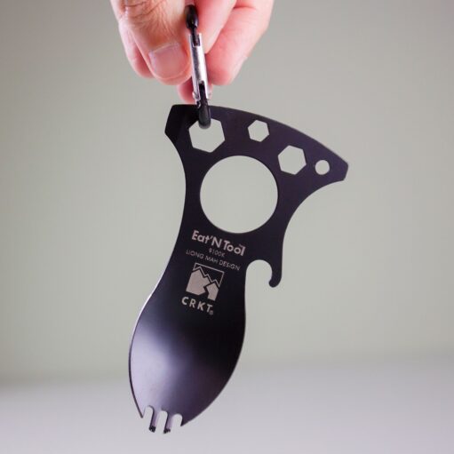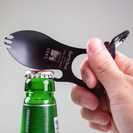 Een onmisbare tool voor op vakantie: dat is het Eat’n tool campingbestek. Deze handige multitool komt goed van pas tijdens het kamperen, backpacken of survivallen. De set bestaat uit een vork, lepel, flesopener, schroevendraaier en inbussleutel. Hang de handige Eat’n tool campingbestek met de handige karabijnhaak aan je broeklus of tas en je hebt altijd deze attributen bij de hand. Zo kun je snel de campingstoel repareren door het schroefje opnieuw vast te draaien en komt de lepel van pas wanneer je een yoghurtje koopt in de supermarkt.