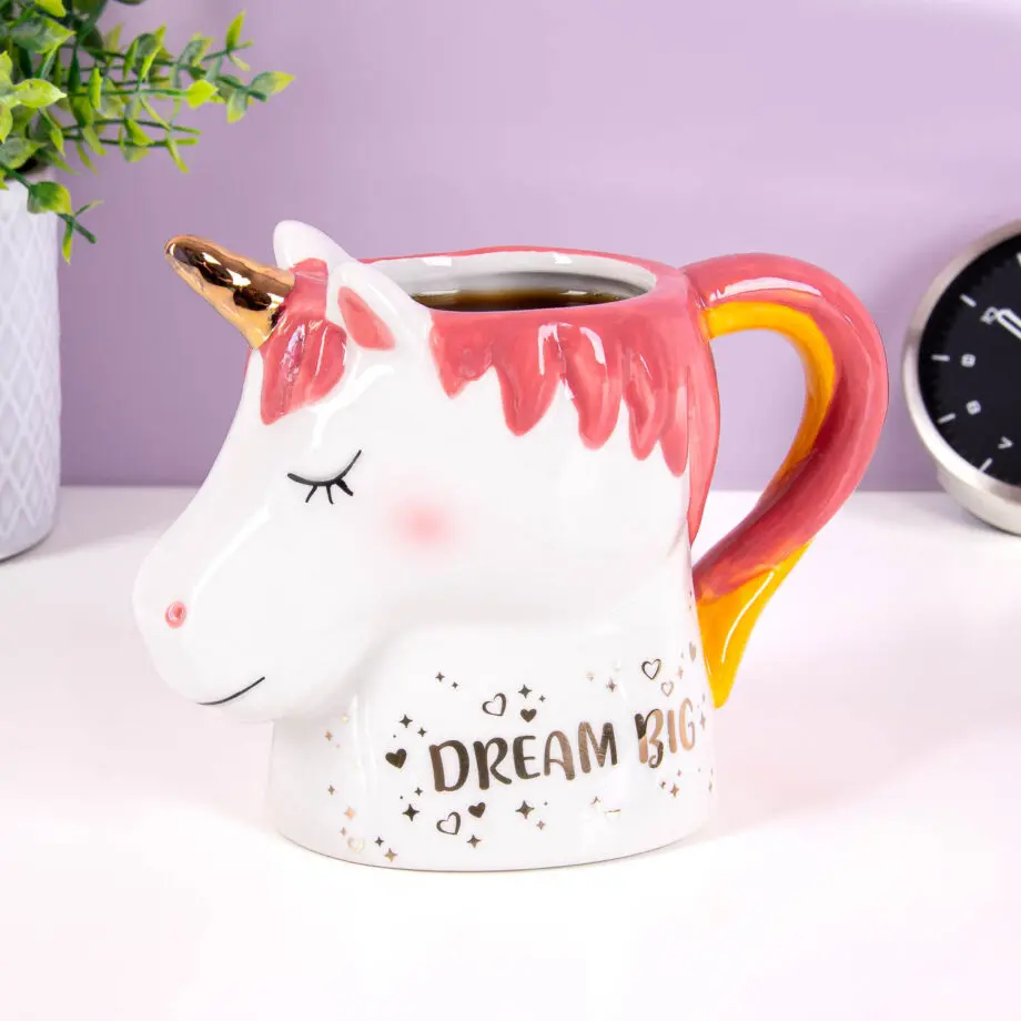 Het is het perfecte cadeautje voor kleine en grote dromers: deze magische Eenhoorn mok. De eenhoorn heeft een goudkleurige hoorn en de tekst: dream big.