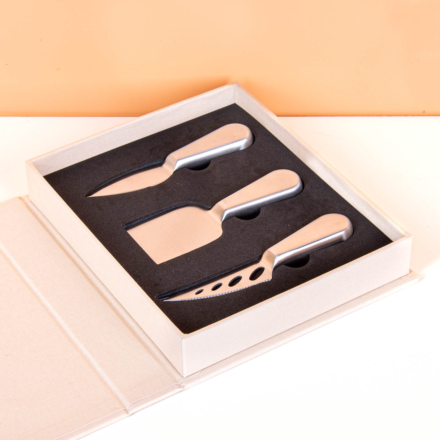 Het Essentials boek met kaas tools van Printworks is een complete set kaasmessen, chique verpakt in boekvorm. Open je het boek, dan vind je drie verschillende messen: een getand mes voor zachte kazen zoals brie, een mes voor kruimelige kazen zoals blauwe kaas, en een veelzijdig mes voor harde kazen zoals parmezaan. Als je hem niet gebruikt, staat hij prachtig tussen je kookboeken. Deze set is perfect voor de borrel, wijnproeverijen of gewoon een gezellige kaasavond op de bank. Ideaal kerstcadeau voor kaasliefhebbers!