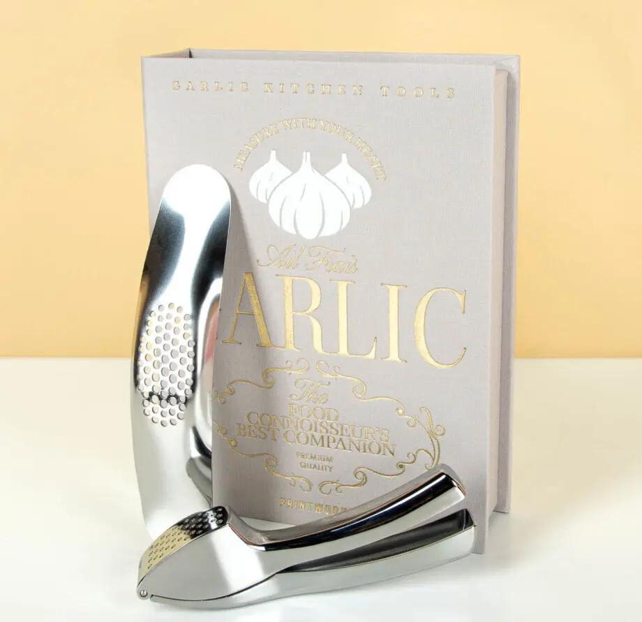 • Een knoflook-gereedschap set in boekvorm