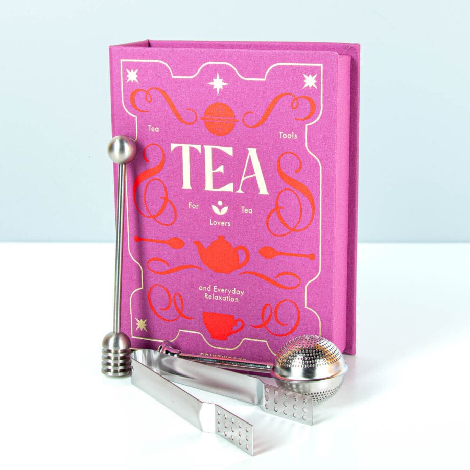 Het Essentials boek met thee tools van Printworks is een complete theeset, chique verpakt in boekvorm. Open je het boek, dan vind je een theetang, thee infuser en honinglepel; alles wat je nodig hebt voor het perfecte kopje thee. De theetang pakt je theezakjes vast zonder je vingers te verbranden, de infuser is perfect voor losse thee en met de honinglepel voeg je gemakkelijk honing toe zonder rommel. Als je hem niet gebruikt, staat hij prachtig tussen je kookboeken. Perfect cadeau voor je moeder en andere theeliefhebbers!