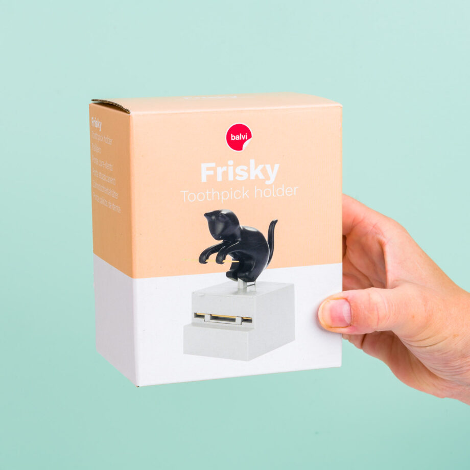Niks is zo Nederlands als een verjaardag met hapjes op een rondgaande schaal. Pep de boel een beetje op, met de Frisky kat cocktailprikkerhouder van Balvi. Een grappige cocktailhouder met bovenop een kat, die de prikkers vangt met haar pootjes. Druk op het hoofd om een prikker te pakken. Zo kan iedereen zijn bitterbal of blokje kaas zelf opprikken van de schaal.