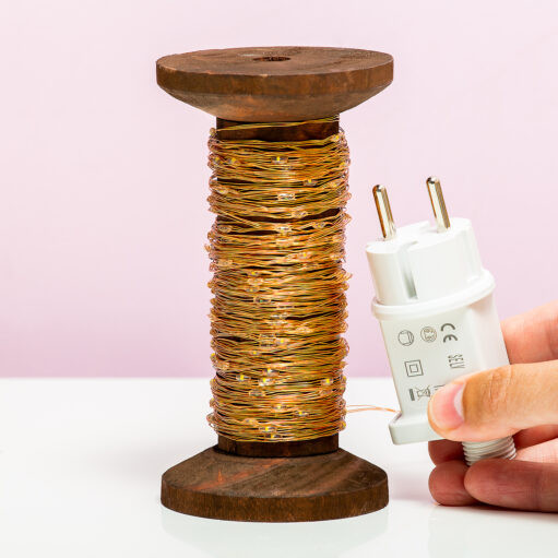 Of je nou dol bent op het naaien van kleding of gewoon heel blij wordt van veel lampjes: de Garenklos fairy lights van Winkee maakt iedereen blij. Deze originele lamp bestaat uit een houten klos, met daar omheen tien of vijftien meter fairy lights. Het koperen lichtsnoer is voorzien van honderd of honderdvijftig ledlampjes. Je kunt het lichtsnoer uitrollen en bijvoorbeeld om het hoofdeind van je bed draperen, maar ook op de klos zelf is het een gezellige toevoeging aan je interieur. De fairy lights zijn leverbaar met aansluiting voor USB of netstroom.