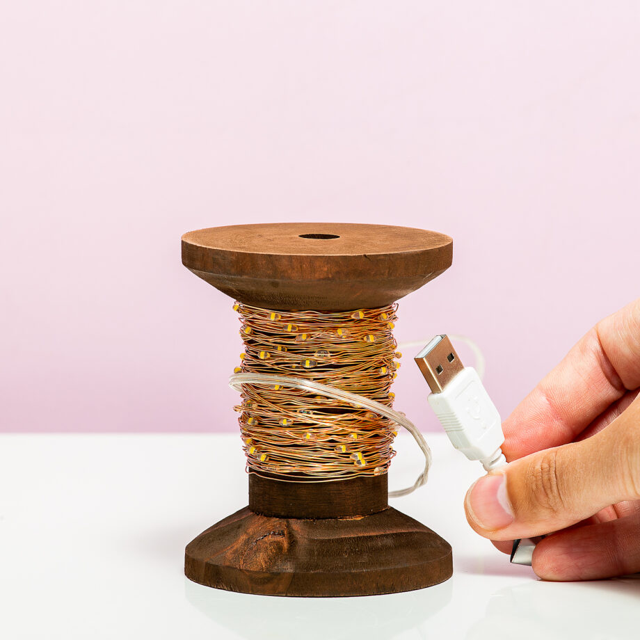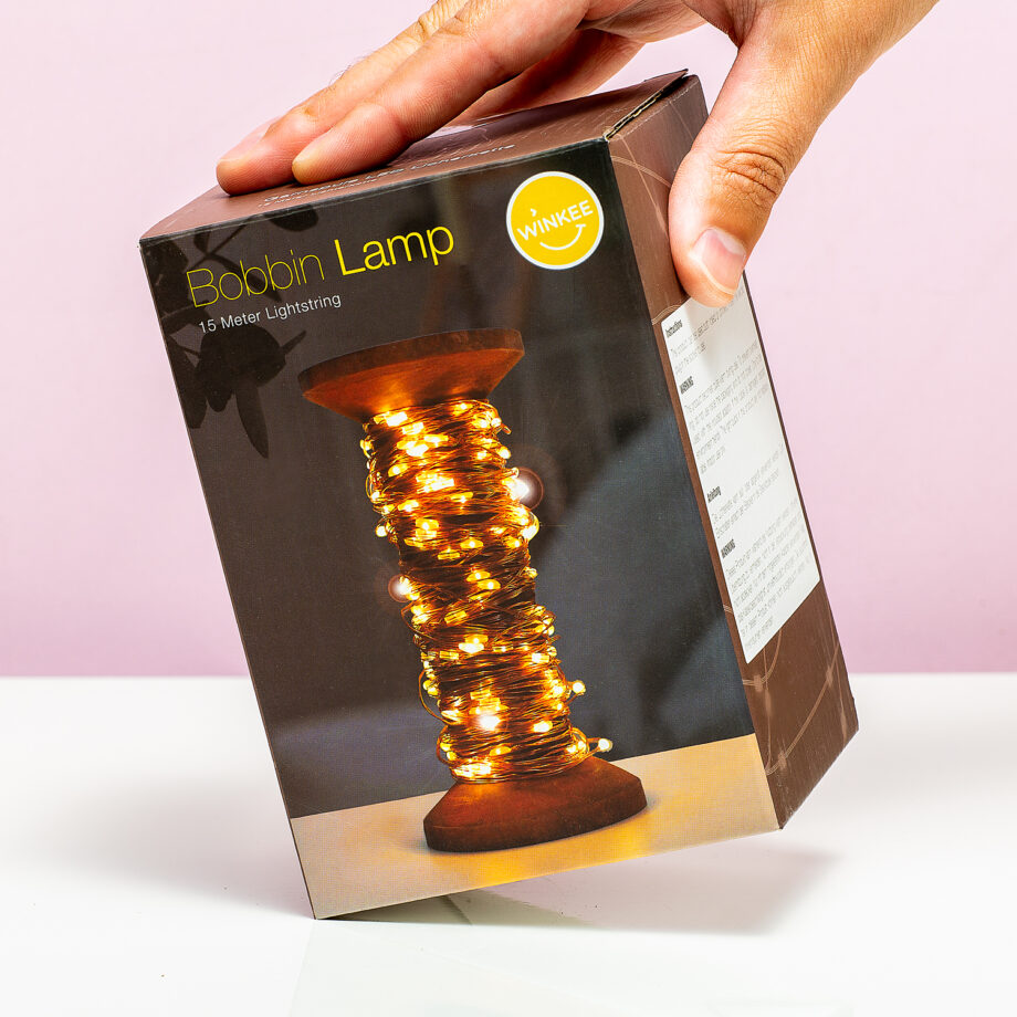 Of je nou dol bent op het naaien van kleding of gewoon heel blij wordt van veel lampjes: de Garenklos fairy lights van Winkee maakt iedereen blij. Deze originele lamp bestaat uit een houten klos, met daar omheen tien of vijftien meter fairy lights. Het koperen lichtsnoer is voorzien van honderd of honderdvijftig ledlampjes. Je kunt het lichtsnoer uitrollen en bijvoorbeeld om het hoofdeind van je bed draperen, maar ook op de klos zelf is het een gezellige toevoeging aan je interieur. De fairy lights zijn leverbaar met aansluiting voor USB of netstroom.