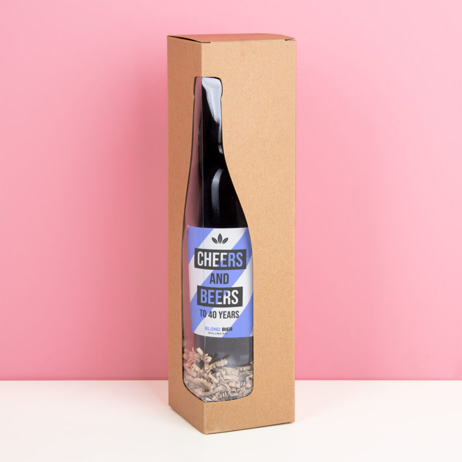 Een verjaardag is een uitstekende reden om een biertje open te trekken. De Gepersonaliseerde bierfles Cheers and beers (750 ml) heeft een etiket dat wij personaliseren met de leeftijd van de jarige. Op het etiket staat de tekst: Cheers and beers to (leeftijd) years. Het blonde Belgische bier is perfect te combineren met oosterse visgerechten of een kaasplankje. Iedere bierliefhebber zal blij zijn met dit cadeau.