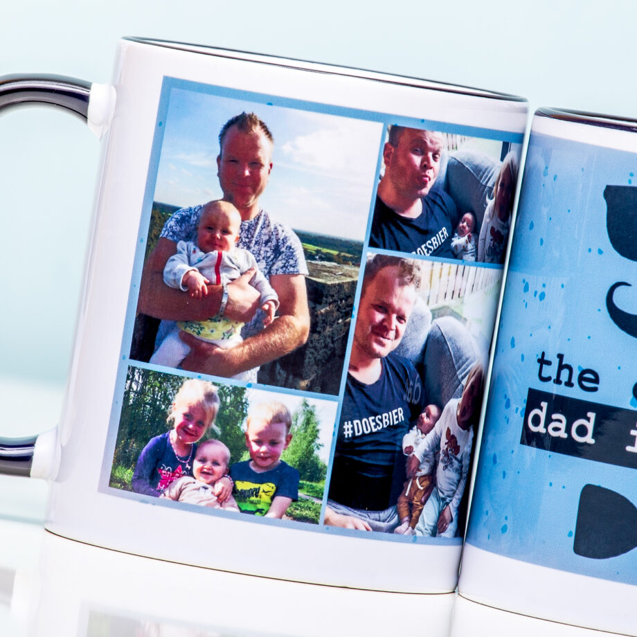 Jouw vader is de aller-, allercoolste en dat mag iedereen weten! Geef hem de Gepersonaliseerde fotomok Coolest Dad cadeau en hij kan pochen dat jij hem zo tof vindt. Op deze fotomok kun je vier foto’s van je pa – of jullie samen – plaatsen. Op de voorkant staat de tekst: de coolest dad in town, samen met de illustratie van een zonnebril, snor en vlinderdasje.