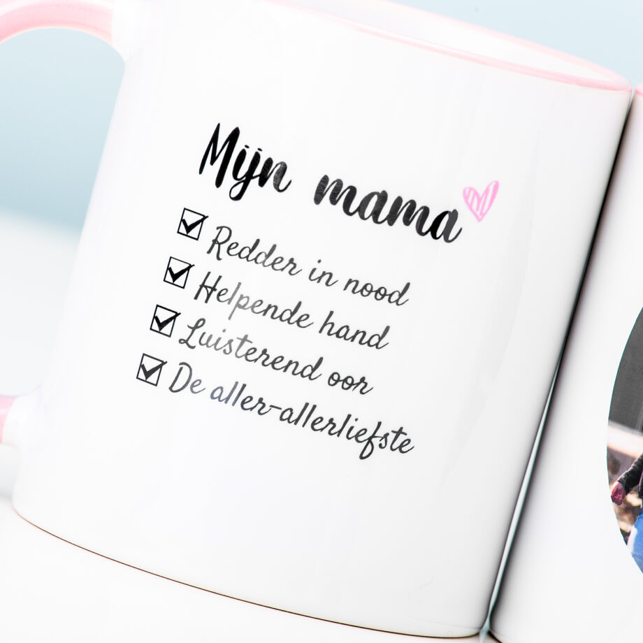 Is het bijna je moeders verjaardag? Of zoek je iets liefs voor Moederdag? Met de Gepersonaliseerde fotomok Mijn mama maak jij je moeder gegarandeerd blij. Op deze mok kun je namelijk een foto van haar of jullie samen plaatsen. Ook is het mogelijk om de vier eigenschappen aan te passen. Maar je kunt ze natuurlijk ook zo laten: jouw moeder is per slot van rekening de liefste!