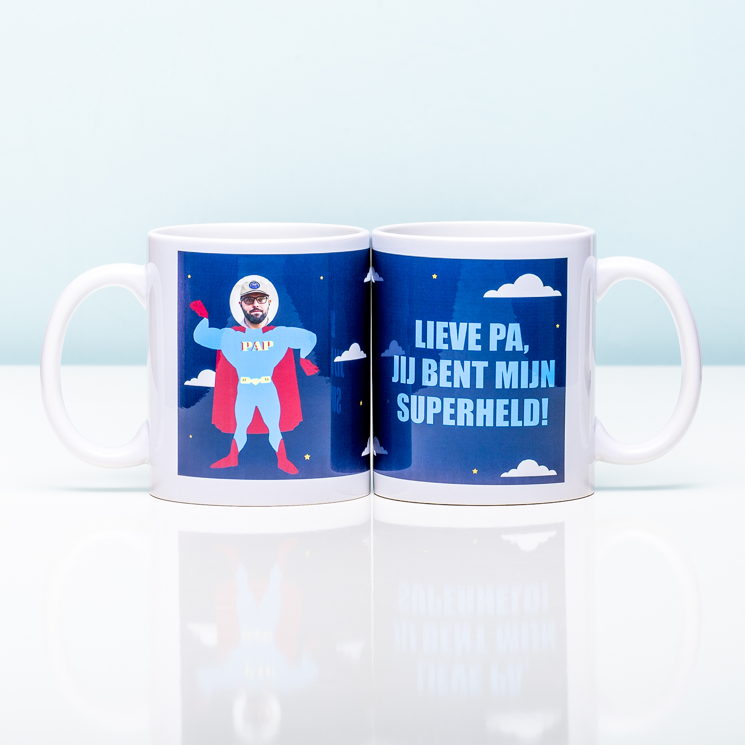 Zeg eens eerlijk: hoe vaak vertel jij je vader dat je dol op hem bent? Met de Gepersonaliseerde fotomok Superheld verras jij je pa op zijn verjaardag of Vaderdag. Deze originele beker is voorzien van een superheld, waar het hoofd van jouw vader op komt te staan. Aan de andere kant staat de tekst: lieve pa, jij bent mijn superheld!