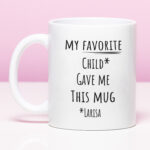 • En op de achterkant: My favorite child* gave me this mug met jouw naam bij het sterretje