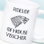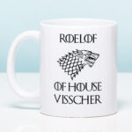 Weinig series zijn zo populair als Game of Thrones. Voor de fans van de hitserie hebben wij goed nieuws: we hebben namelijk een geweldige beker ontworpen! Als je de show voor de zoveelste keer kijkt, doe dan dat onder het genot van een kop koffie uit je eigen Game of Thrones beker. De Gepersonaliseerde mok Game of Thrones House of bevat jouw voornaam en achternaam, vergezeld van de Stark sigil. Deze beker is van Tim, of house Mulder! Het perfecte kadootje voor GoT fans!