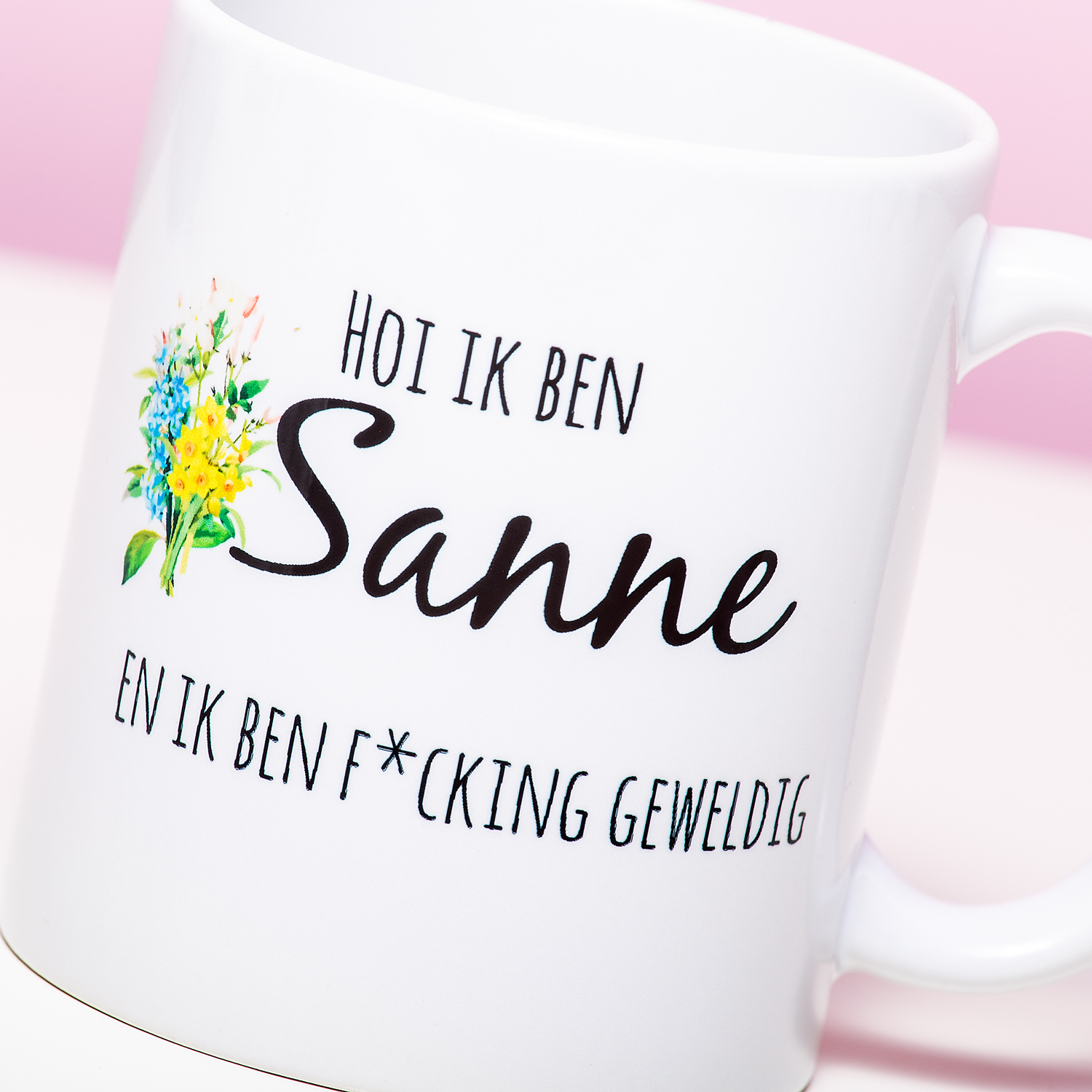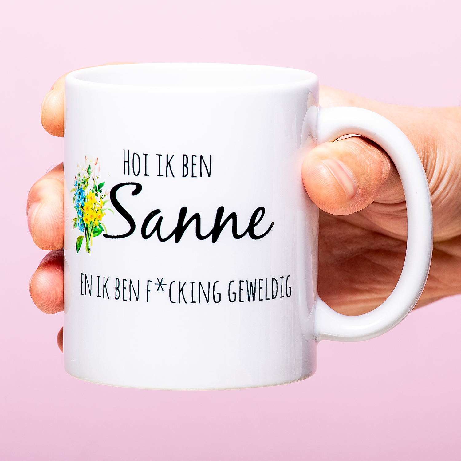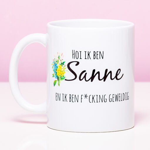 Hoi, ik ben Sophie en ik ben fucking geweldig! Het is niet de meest bescheiden introductie, maar in elk geval wel duidelijk. Met deze mok weet iedereen je naam én hoe geweldig je bent. Dit is de perfecte mok om mee te nemen op je eerste werkdag! Nee geintje natuurlijk: de Gepersonaliseerde mok Ik Ben F*cking Geweldig is vooral leuk om cadeau te geven aan je beste vriendin of zus, om haar te laten weten hoe cool je haar vindt. Vul haar naam in en wij drukken de mok speciaal voor je. Een uniek en persoonlijk cadeau voor je bestie!