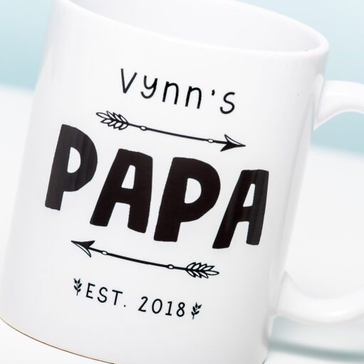 Zoek je een kraamcadeau voor je beste vriend die net een kleintje heeft gekregen? Of ben je op zoek naar een origineel cadeautje voor de eerste Vaderdag van je geliefde? Geef hem de Gepersonaliseerde mok Papa sinds kado! Deze mok bevat de voornaam van het kindje en het geboortejaar. Zo komt er bijvoorbeeld te staan: Emma’s papa, est. 2019. De trotse vader is ongetwijfeld zo blij met deze beker dat ‘ie er nog uit drinkt als zijn kleine prinses al bijna gaat trouwen. Deze gepersonaliseerde mok voor vaders is een schot in de roos!