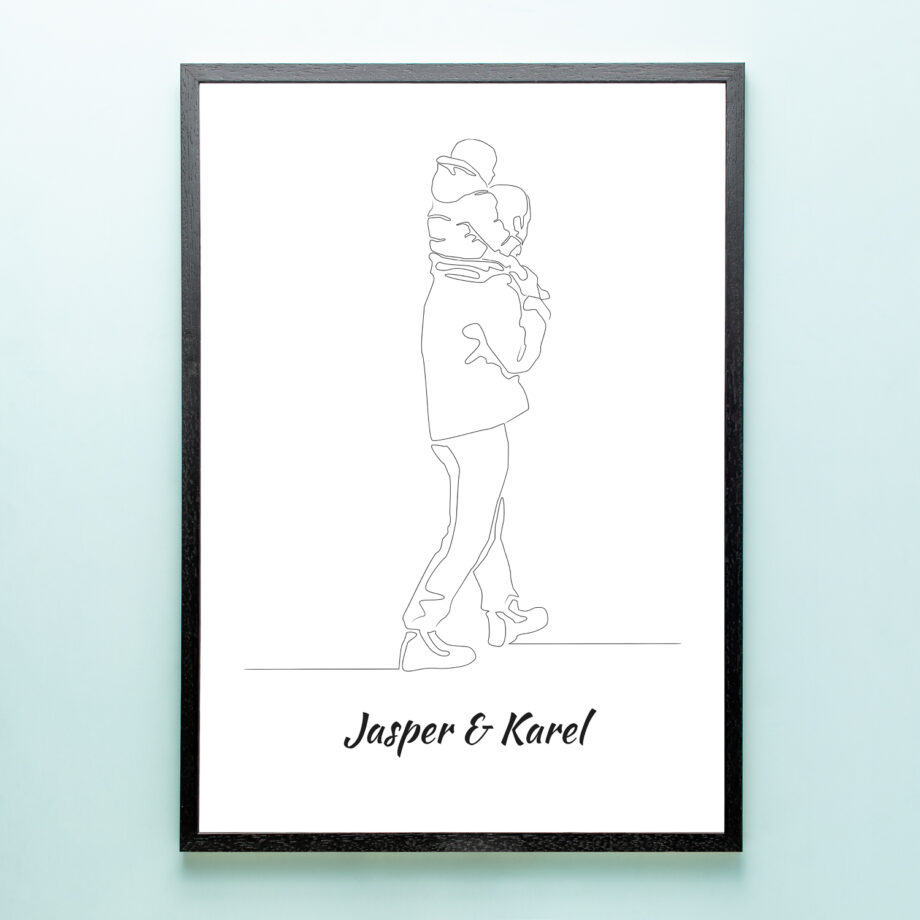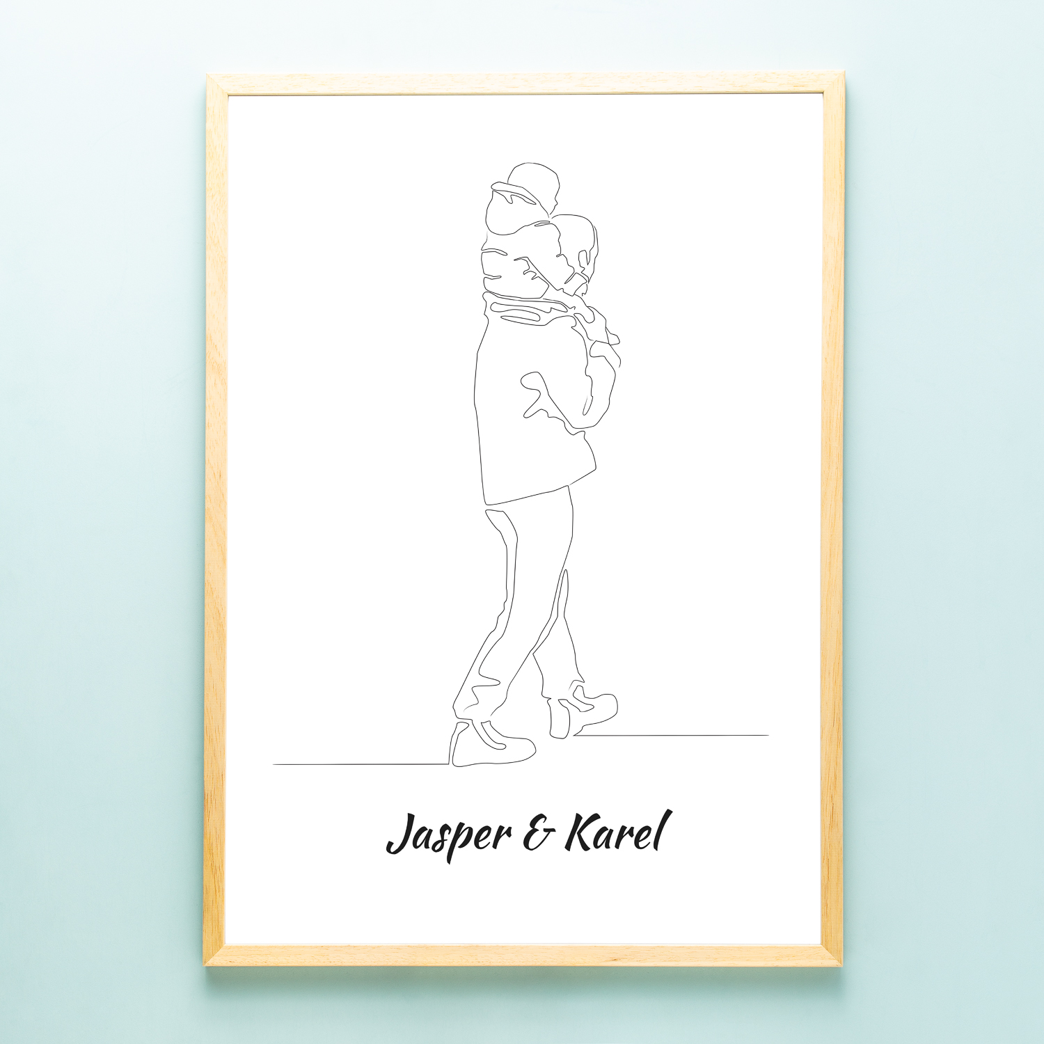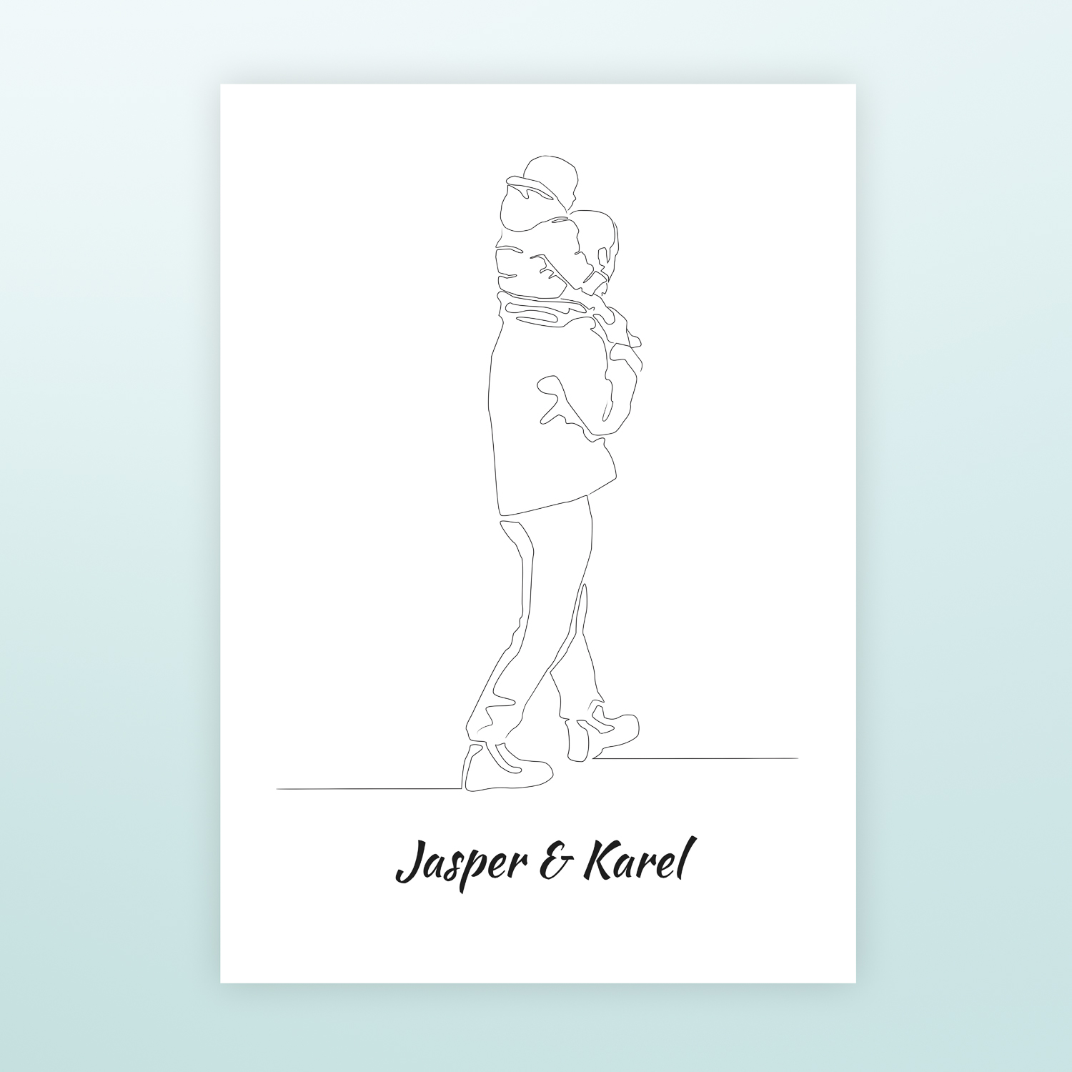 Verras je vader met een prachtig cadeau, op zijn verjaardag, Vaderdag of zomaar. De Gepersonaliseerde poster Papa en ik laat een lijntekening zien, van een kindje op de schouders bij zijn of haar vader. Onder de tekening komen de namen van papa en kind te staan, met daaronder ruimte voor nog een eigen tekst. De poster wordt gedrukt op stevig papier op A2