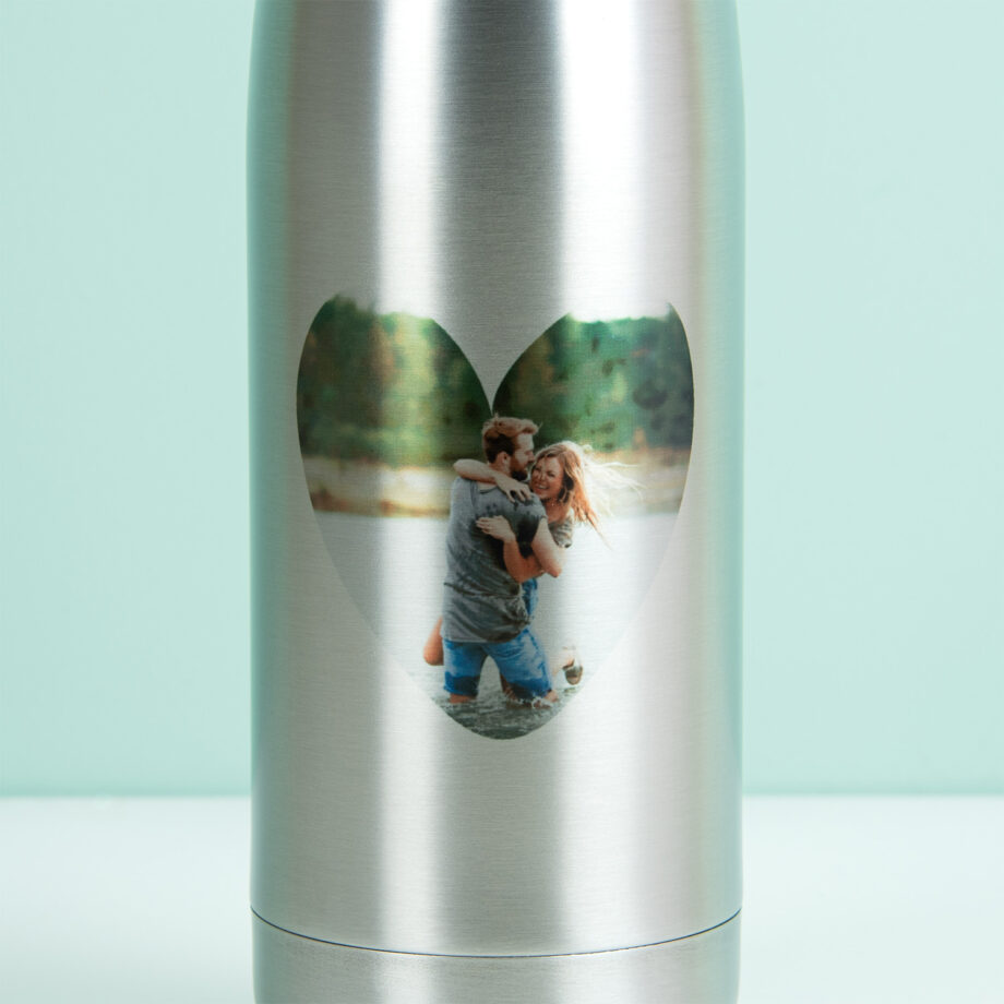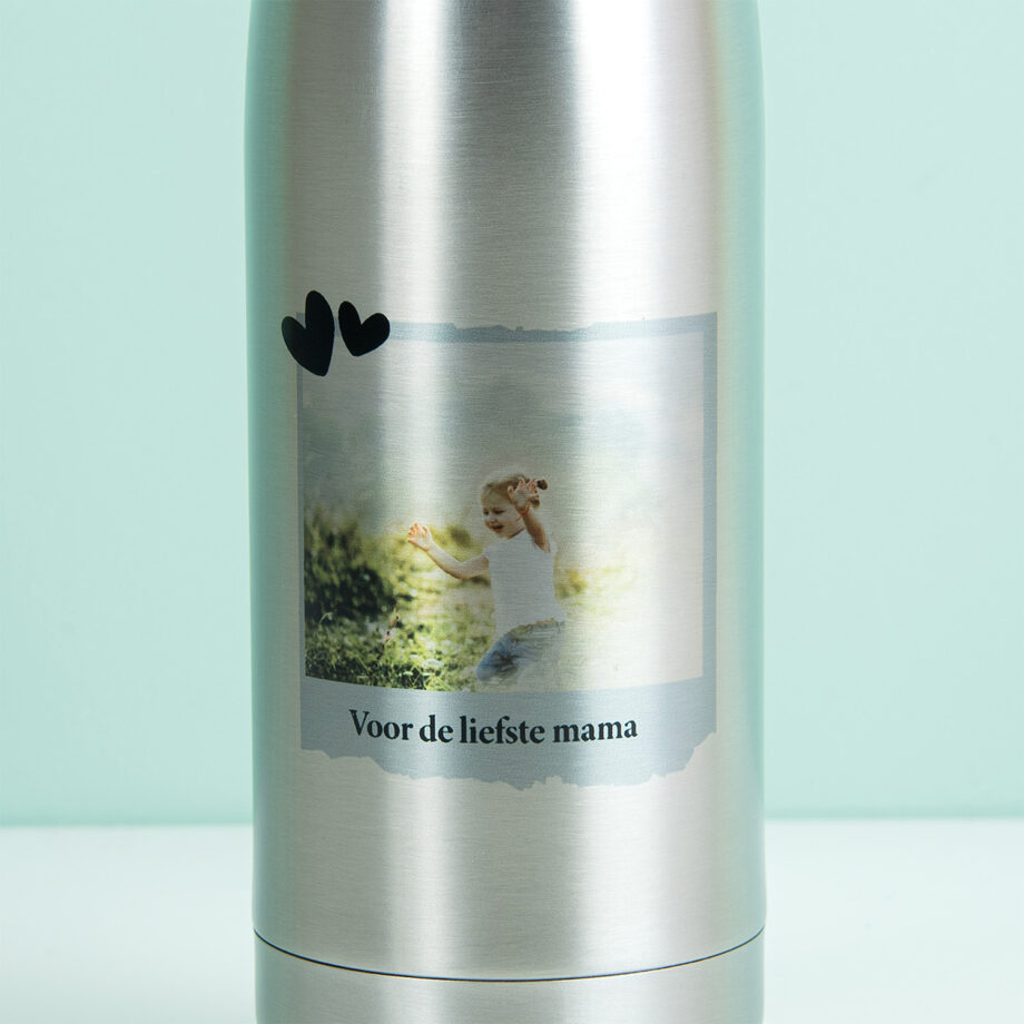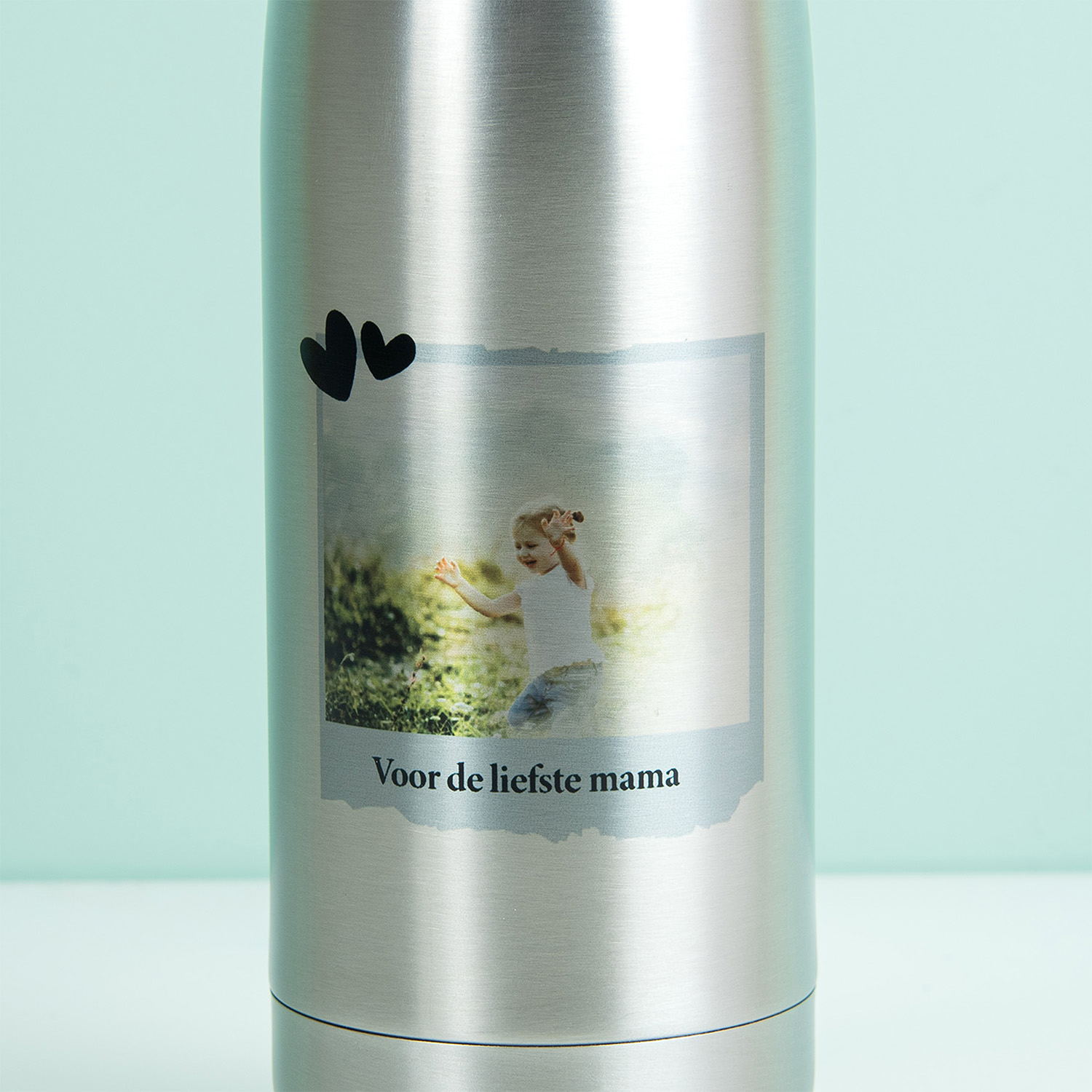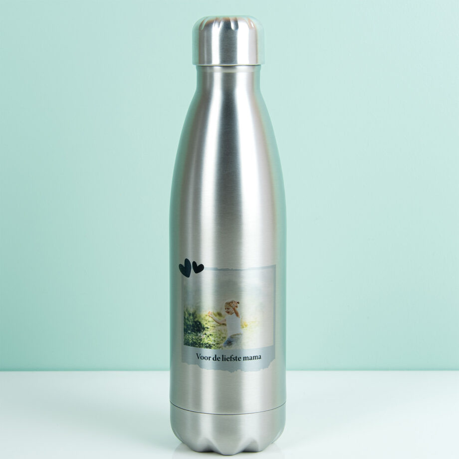 Wil jij je water of thee drinken uit een unieke thermosfles of zoek je een origineel cadeau voor iemand? Kies voor de Gepersonaliseerde thermosfles met foto! Op deze thermosfles kun je je eigen foto laten drukken. Dat is leuk voor jezelf, maar ook om cadeau te geven. Laat de thermosfles bijvoorbeeld bedrukken met een foto van je kinderen voor Vaderdag of verras je vriendin met een thermosfles met een grappige foto van jullie samen. Naast foto’s kun je er ook tekst en symbolen op laten drukken.