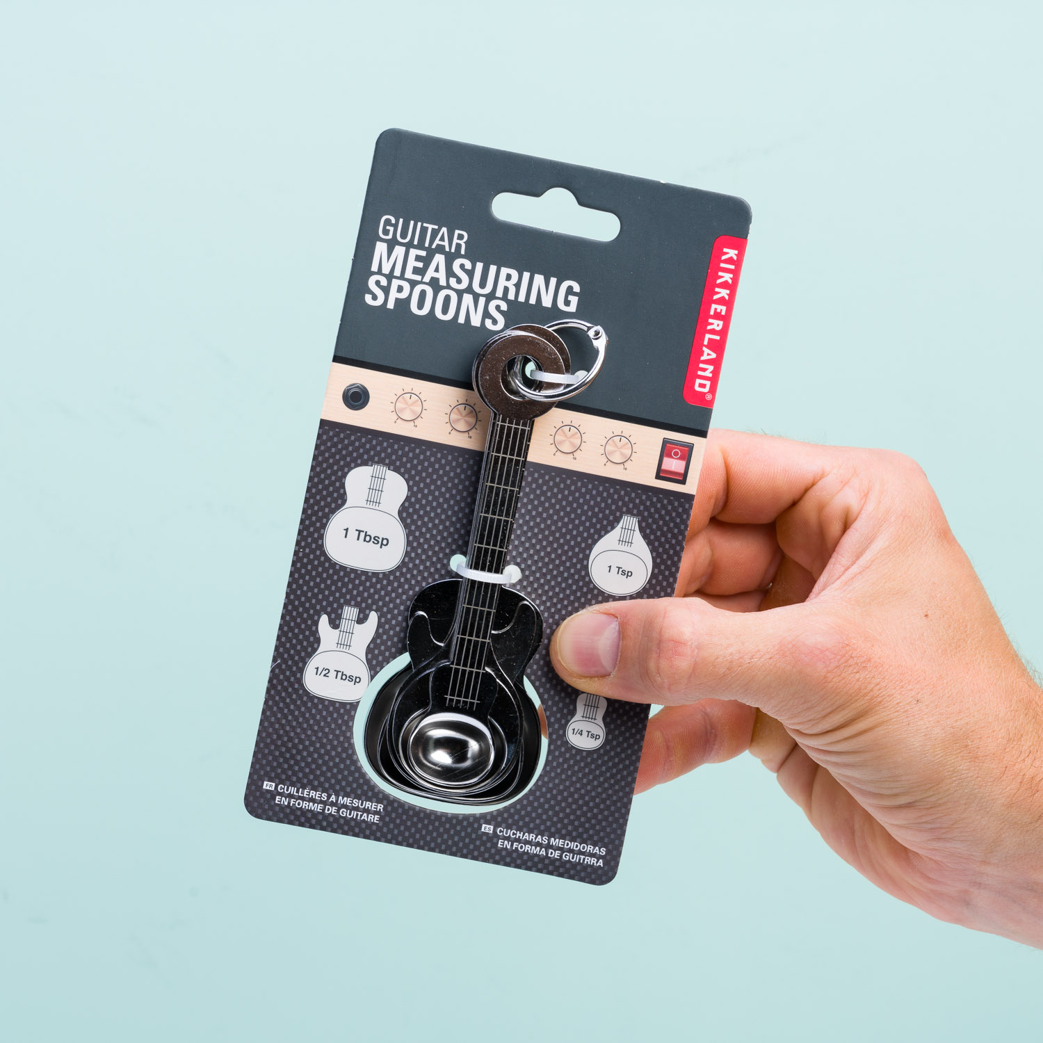 Iets lekkers bakken wordt een stuk makkelijker met de Gitaar maatlepels (set van 5) van Kikkerland. Met deze grappige maatlepels – in de vorm van een gitaar – weet je zeker dat je niet te veel zout of te weinig citroensap aan je baksels toevoegt. De maten variëren van een kwart theelepeltje tot aan één eetlepel. Vanaf nu af aan geen geknoei meer met ondiepe theelepels: jij bakt voortaan als een echte sterbakker. De maatlepels zitten aan een handige karabijnhaak en passen allemaal in elkaar.