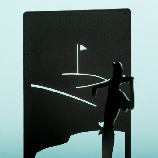 Je mooiste sportboeken zet je in je boekenkast of op een boekenplank. Ze blijven netjes op hun plaats staan met de Golf boekensteun van Balvi. Deze boekensteun is gemaakt van metaal en er staat een swingende golfer op. Kijk je naar de zijkant, dan zie je ook de golfbaan met het vlaggetje. Deze originele boekensteun is het perfecte cadeautje voor een golfliefhebber.