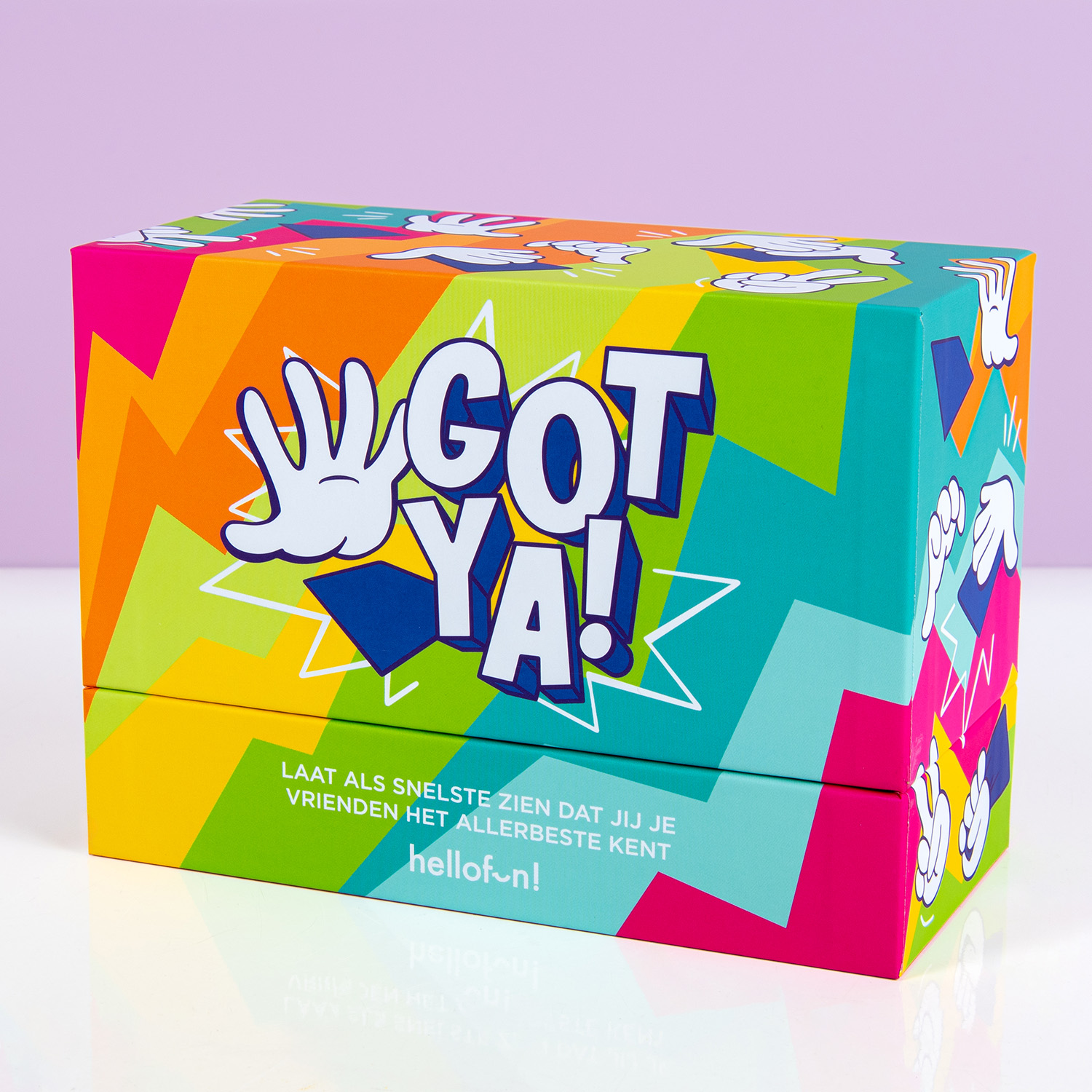 Hoe goed ken jij je vrienden of familie? Dat test je met het Gotya! spel (Nederlandse editie) van Hellofun!. Het doel van het spel is het antwoord te raden wat de ander heeft gekozen. In het spel zitten bijvoorbeeld meerkeuzevragen als: Ik ben het bangst voor clowns, spinnen of naalden. In drie rondes test je hoe goed je de anderen kent.