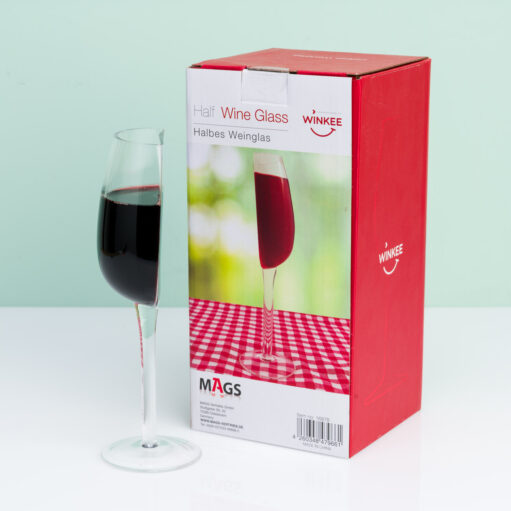 Wil je liever niet te veel wijn drinken? Dan is het Half wijnglas van Winkee perfect voor jou! Dit originele wijnglas lijkt gehalveerd te zijn. Het is daarom perfect voor de bescheiden wijndrinker. Ook leuk om cadeau te geven aan de vriendin die steeds maar een half glaasje wijn wil, maar toch blijft bijschenken. Een origineel wijnglas waarmee je direct het ijs breekt op een date of je bezoek laat lachen.